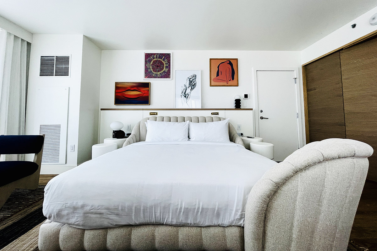 The basic room is very spacious: a very large and comfortable bed, a giant screen TV, a mini bar, a refrigerator, a wireless charger for cell phones and a safe to store your papers and other important documents.